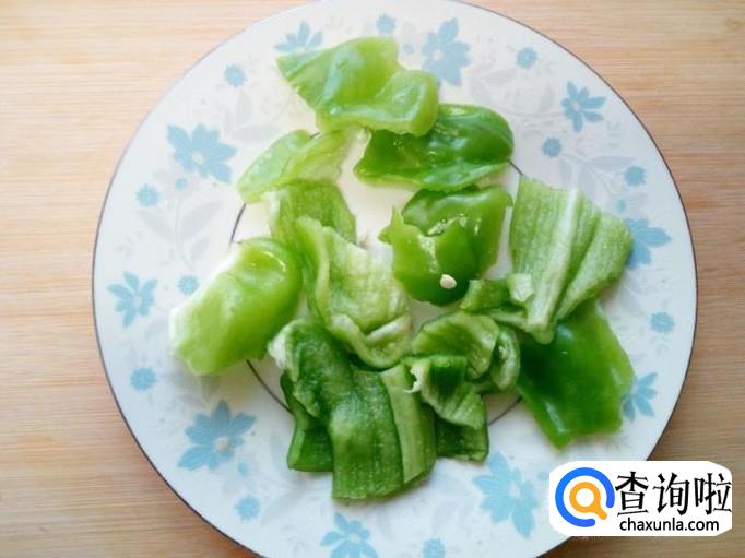 青椒用水清洗干净,控干水分,用手撕成片。