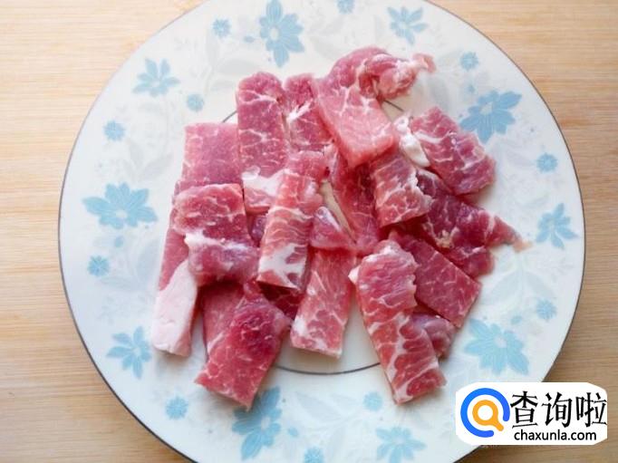 猪肉用水冲洗干净,控干水分,切成片。
