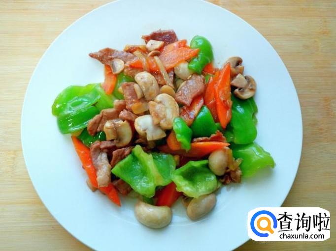 猪肉 100克,口蘑 150克,青椒 1个,胡萝卜 适量。