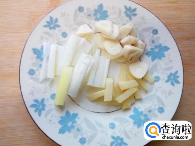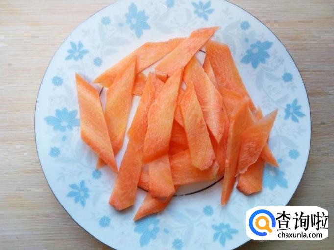 胡萝卜去皮,用水清洗干净,控干水分,切成片。切好葱,姜,蒜备用。