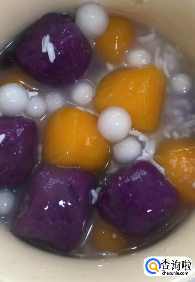 最后美味的紫薯南瓜汤圆酒酿羹就制作完成啦!看着是不是很有食欲?