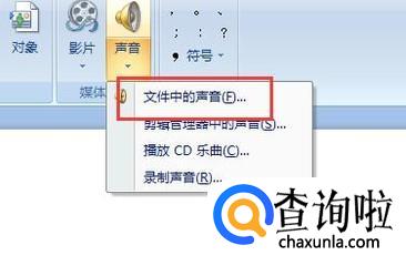 然后在工具栏中找到插入,然后看到插入声音。