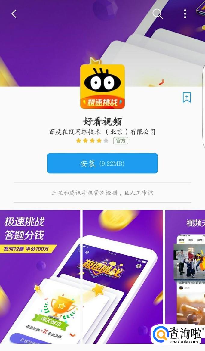 在你的手机应用商店里面搜索好看视频,因为极速挑战答题活动入口在这个软件当中,点击下载安装即可。