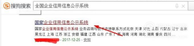 首先我们打开搜狗搜索引擎搜索“全国企业信用信息公示系统”,后点击标题打开官网。