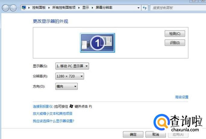 我这个是笔记本电脑,最佳分辨率应该是1366x768,当前分辨率是1280x720,显然偏低了。