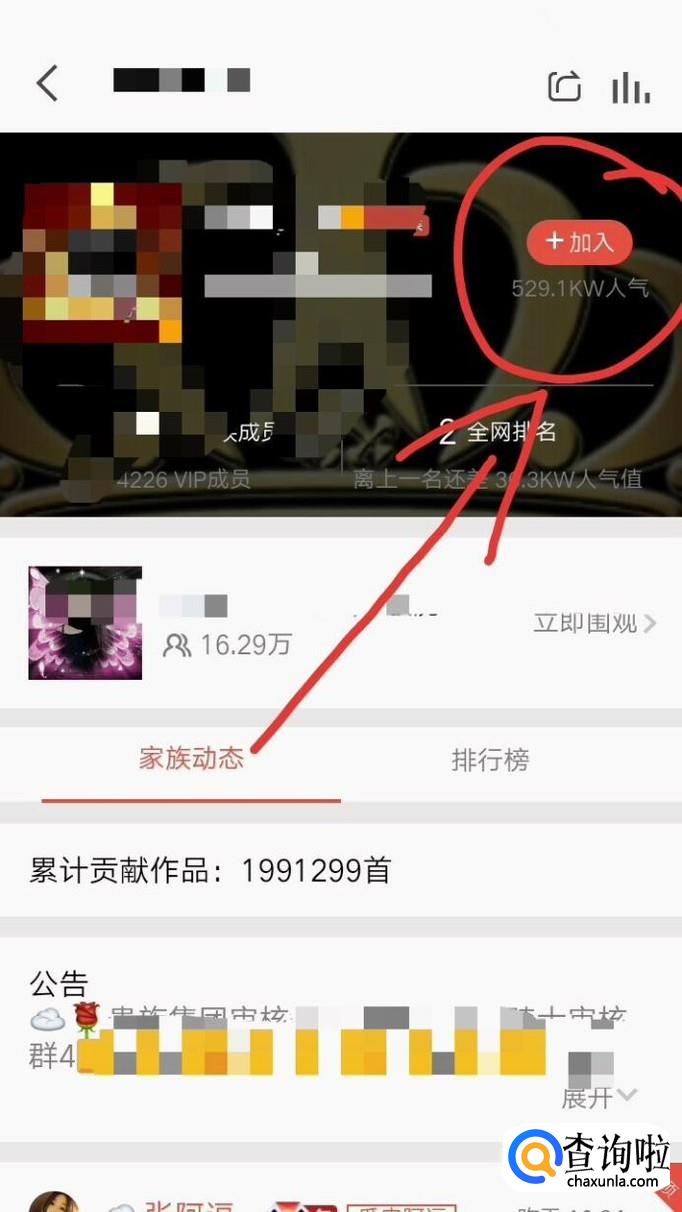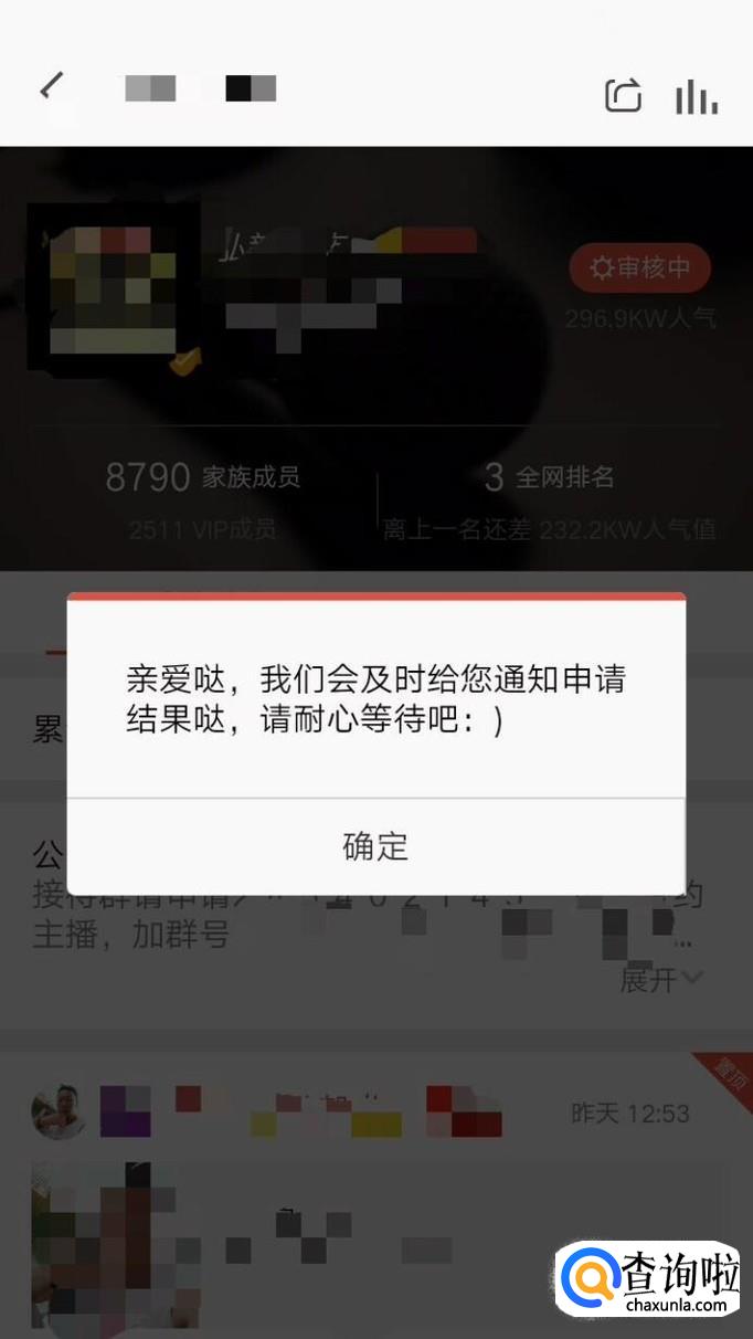 在家族的公告中有审核群,申请群的QQ号。可以通过QQ添加,然后发送自己申请加入的理由,这样审核过的几率更大哦!