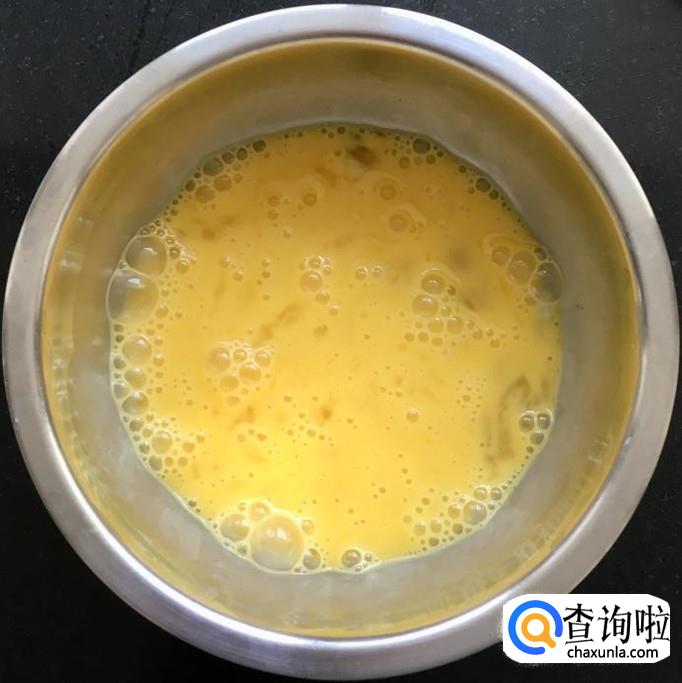 水发木耳撕成小块,五花肉适量冲洗干净切成五花肉片,鸡蛋三个打入碗中搅拌成蛋液备好