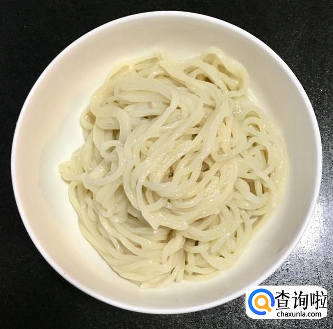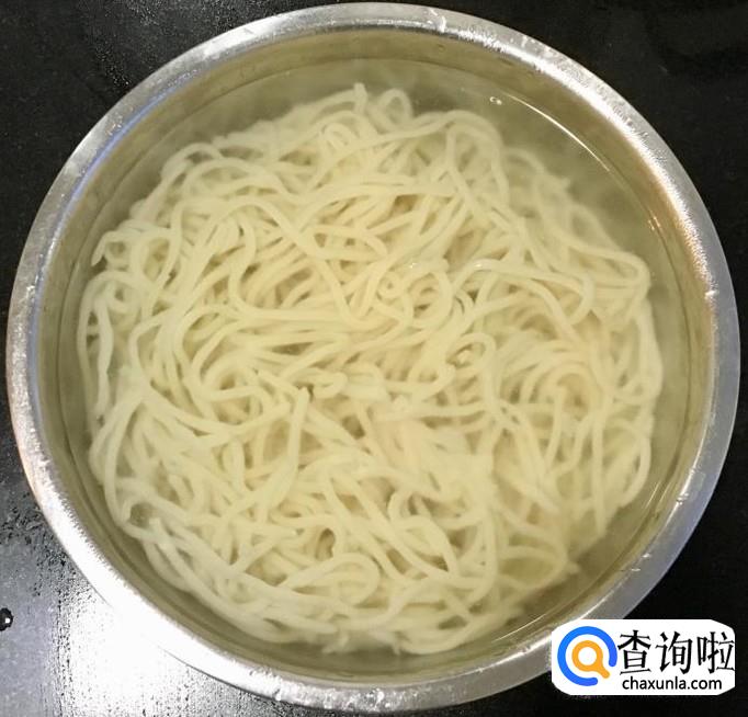 锅中加水煮沸下入面条煮至适合自己的软硬程度,捞出过一下凉水