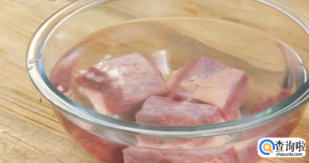 将牛腱子肉切大块洗净后放入清水浸泡,捞出沥干。