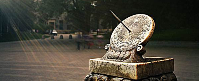 人们最初使用的是一种叫“圭表”的计时器,它是一种依靠计算日影长度来计时的工具。所谓“圭表”由两部分组成:直立在地面测日影的标杆或石柱叫做表,南北放置测量表影的刻板叫做圭。时间又被称为“光阴”,意即太阳在地上留下的阴影,光阴一词就和圭表有关系。在圭表的基础上,人们又发明了“日晷”,还是以光的投影来判断时刻。日晷由一根晷针和一个刻有刻线的晷盘组成。当太阳的方位变动时,晷针在晷盘的投影所指的方向也不一样。古人根据长期的观察,确立了十二个时辰所对应的日影方位并以此来判断时间。比如“午时三刻”指的其实就是日晷盘午时位置的第三个刻度。