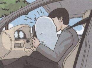 当汽车在行驶过程中发生碰撞事故时,首先由安全气囊传感器接收撞击信号,只要达到规定的强度,传感器即产生动作并向电子控制器发出信号。电子控制器接收到信号后,与其原存储信号进行比较,如果达到气囊展开条件,则由驱动电路向气囊组件中的气体发生器送去起动信号。气体发生器接到信号后引燃气体发生剂,产生大量气体,经过滤并冷却后进入气囊,使气囊在极短的时间内突破衬垫迅速展开,在驾驶员或乘员的前部形成弹性气垫,并及时泄漏、收缩,吸收冲击能量,从而有效地保护人体头部和胸部,使之免于伤害或减轻伤害程度。现代汽车不仅增加了侧面防撞安全气囊,在安全气囊的织物材料、点火器、传感器技术等方面都在不断地发展进步。