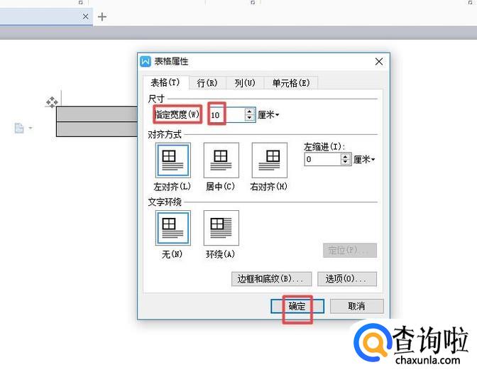 弹出的界面,我们看到指定宽度的设置,此处我们设置为10,然后点击确定;
