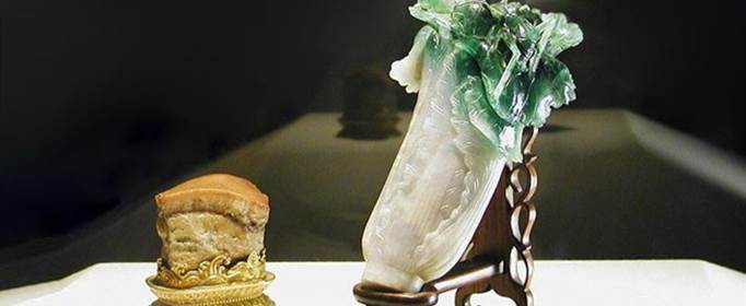 1、翠玉白菜:是由翠玉所琢碾出白菜形状的玉器。翠玉白菜原是光绪帝妃子瑾妃宫中的一件陈设器,是由一块一半灰白、一半翠绿的玉石雕刻而成,这棵白菜与真白菜在大小、长相上相似度极高。