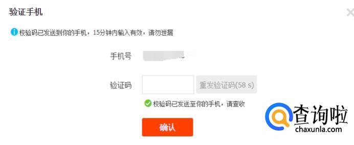 此时会让你输入个人手机号,输入之后将手机接收到的验证码输入,再点击确认。