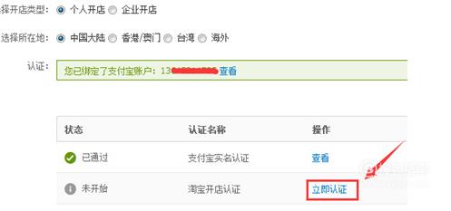 到这里我们再返回“卖家中心-马上开店-然后点击继续认证”,如下图所示: