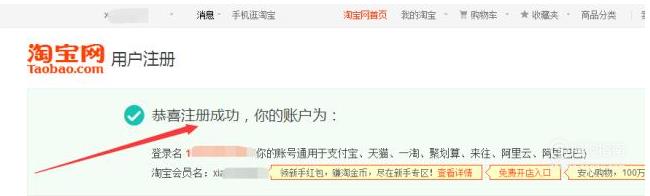 进入下一界面后就出现“注册成功”字样,说明你的淘宝账户已经注册成功了,如图。