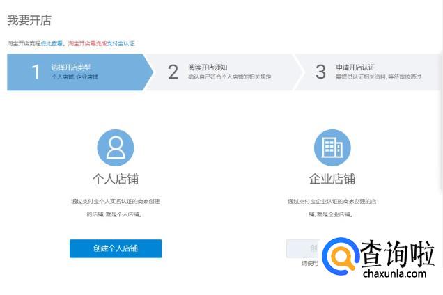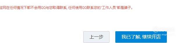 点击“创建个人店铺”,阅读“开店须知”,点击“我已了解,继续开店”进入下一界面,如图。