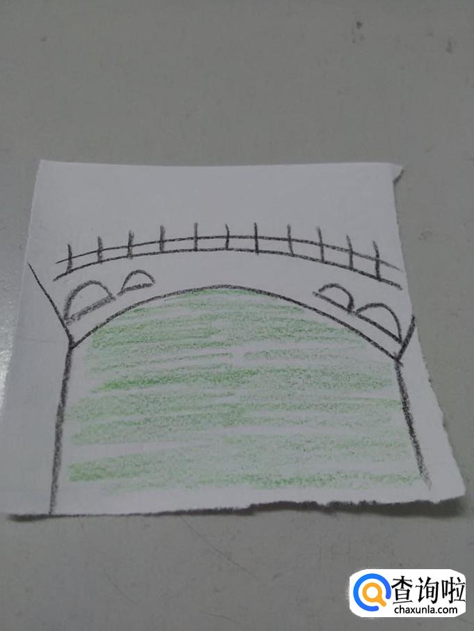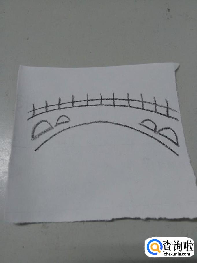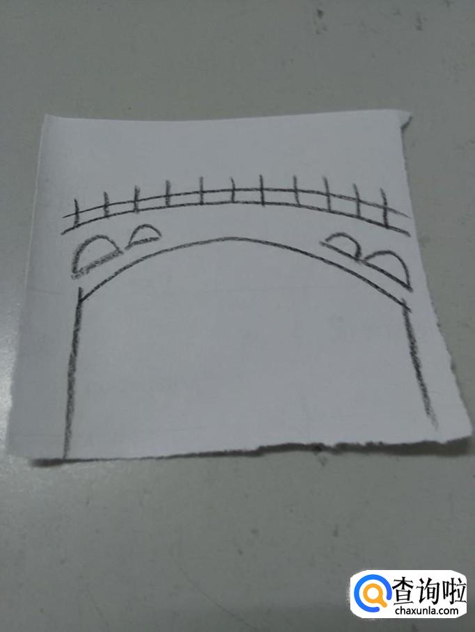 在桥栏下面再画一条弧线,表示桥中间的桥拱。