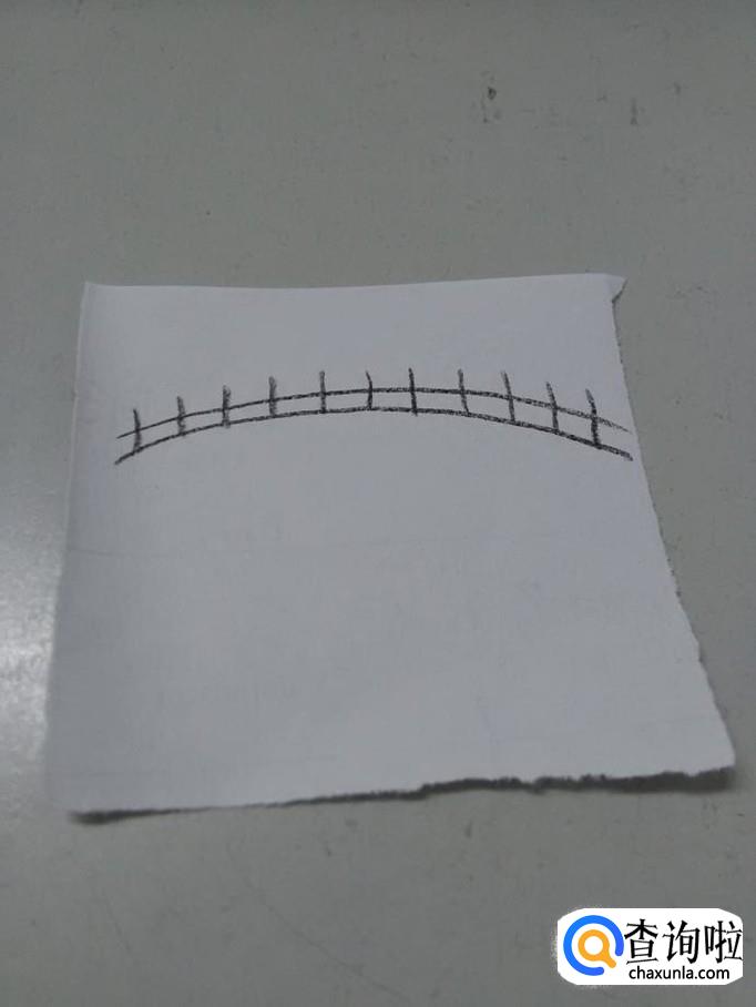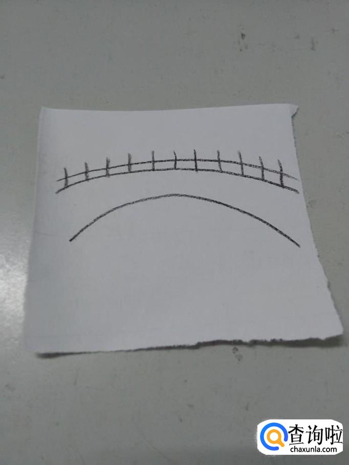 在弧线上画一些长度相等的竖线,表示桥栏。