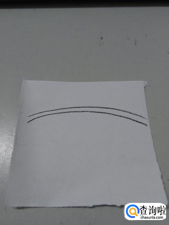 先用黑笔在纸上画两条弧线,表示桥上方的边缘。