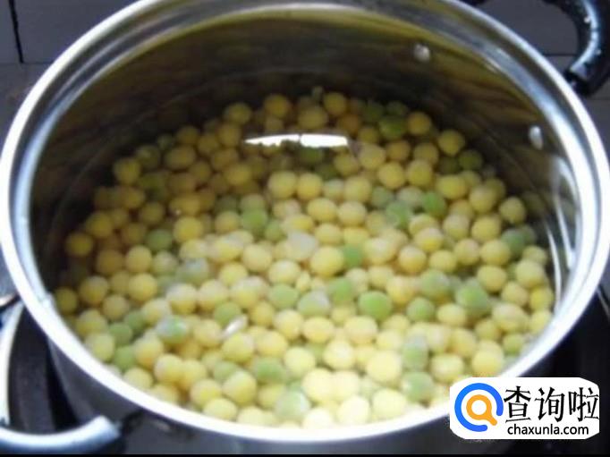 泡好以后,把水和豆子放在高压锅中,煮半个小时,直到成豆茸。