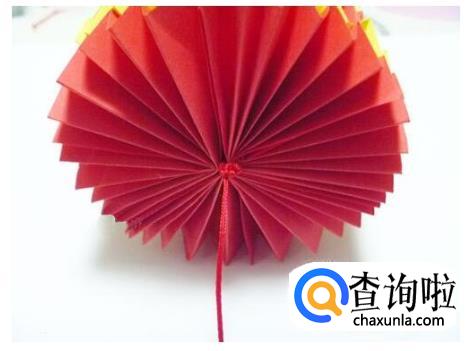 贴两张长条系在绳子上装饰一下,如图,这样灯笼就做好了。