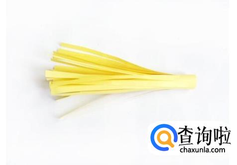 把一个长方形纸剪成须状,注意不要剪断,上方要留下一条用来粘贴胶水。
