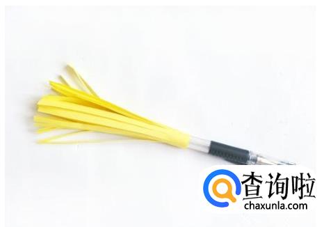 用笔将制作好的穗子卷起来(用粗一点的笔比较好哦,因为下面还要打洞。)