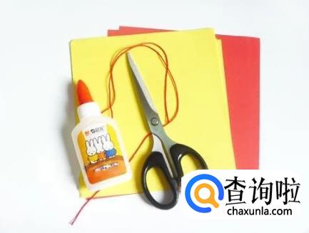 准备材料:彩纸,剪刀,胶棒,绳子,打孔机。