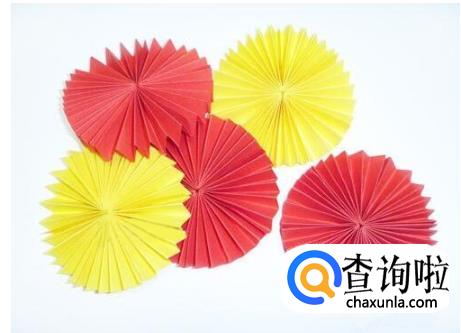 用绳子将五个制作好的圆穿在一起。颜色错开来会比较美观。