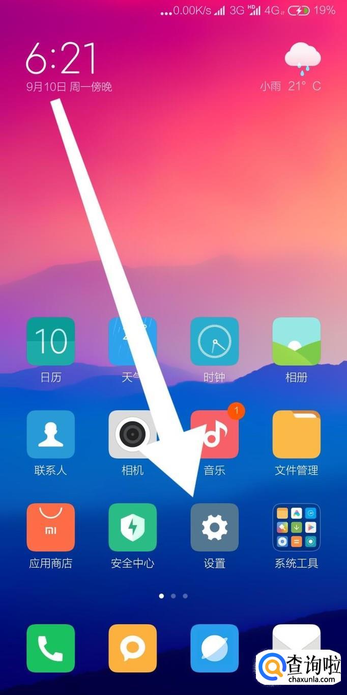首先点击进入小米手机的设置应用程序。