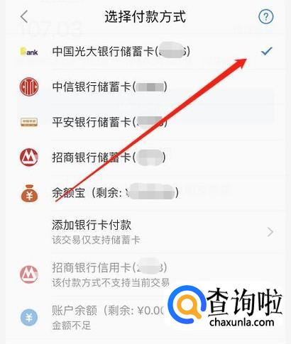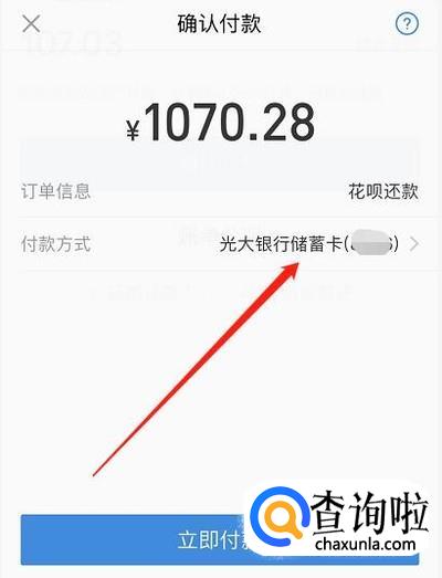 选择你合适的银行卡进行付款,记得信用卡是无法偿还花呗额度的。