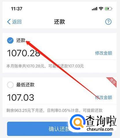 进入还款界面,你可以选择你的付款方式。