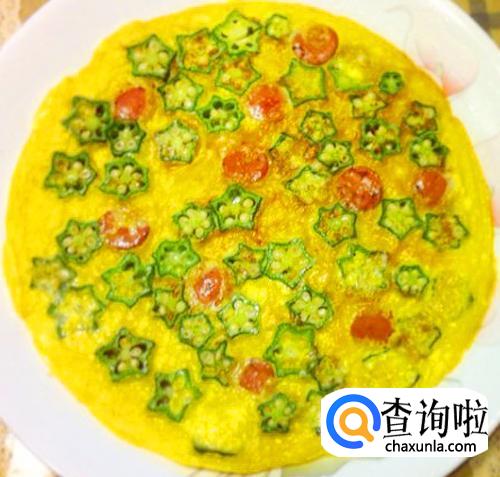 将秋葵切成细丁,加入鸡蛋液、香肠切片、少许葱、盐、水搅拌均匀,然后在锅内抹上少许油,盖上盖子烘蛋,一面干之后换另一面,一道秋葵烘蛋就做好了。这道菜的特点是非常简单,十分适合当作早餐食用。
