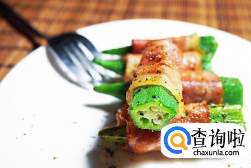 将秋葵洗净,去掉头部,用培根片卷成卷,然后放在热锅上煎至出油熟透,有香气溢出即可摆盘,吃时撒上黑胡椒粉、葱花等调味。这道菜的做法不用费一滴油,且简单易做,也是比较受欢迎的一种秋葵吃法。