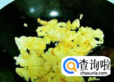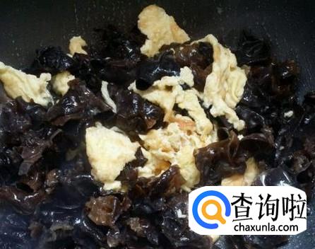 将鸡蛋放入锅中,一定要先放鸡蛋,后放木耳,因为木耳遇油会爆响。