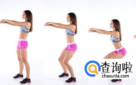 2、下蹲时,要注意背部打直,身体微微前倾,好像要往后坐的感觉。
