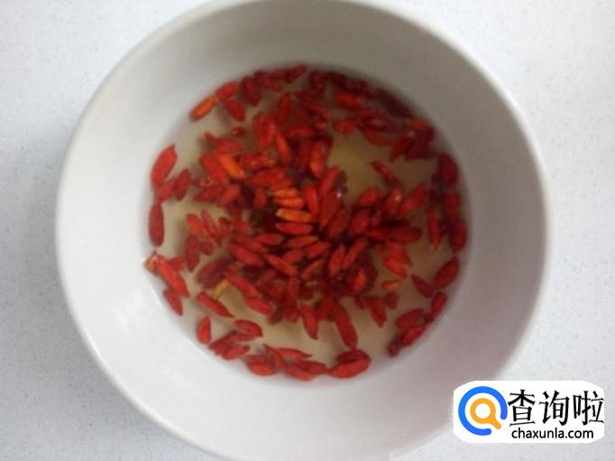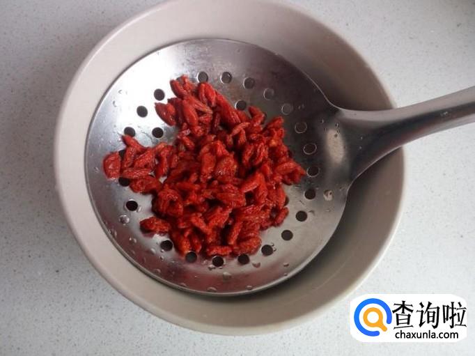枸杞用温水泡软,清洗干净,控干水分,备用。