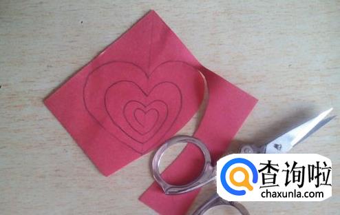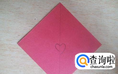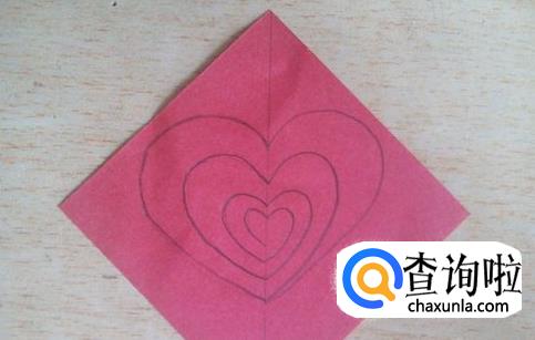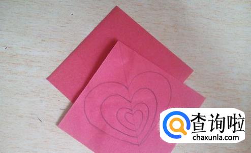 将另一张纸和这张画了爱心桃的纸堆叠起来。