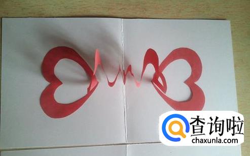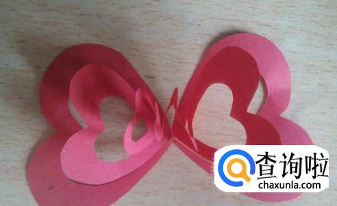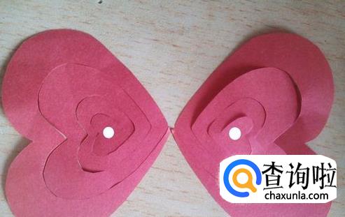 两个爱心桃剪下来后,把两张纸中心的爱心桃用胶水粘起来,图中白色圆点处粘在一起。