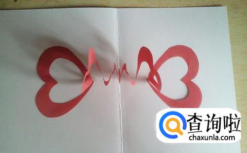 然后将爱心桃的最外侧粘在贺卡中心两边对称的地方。