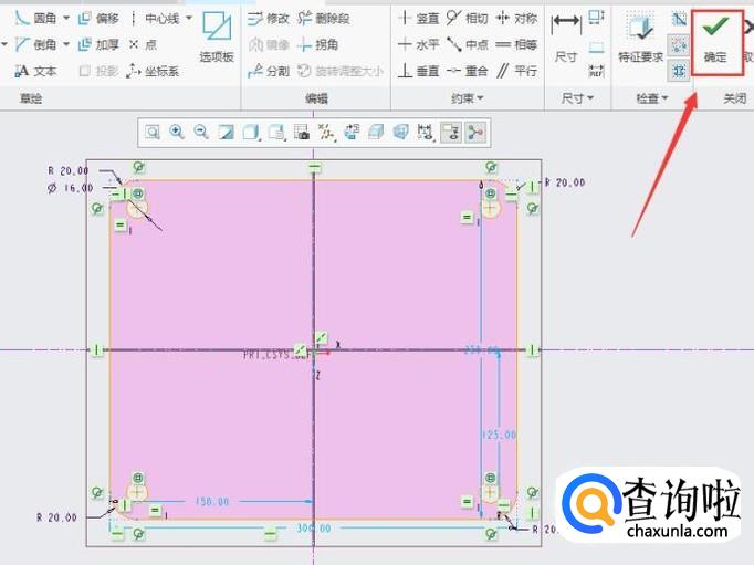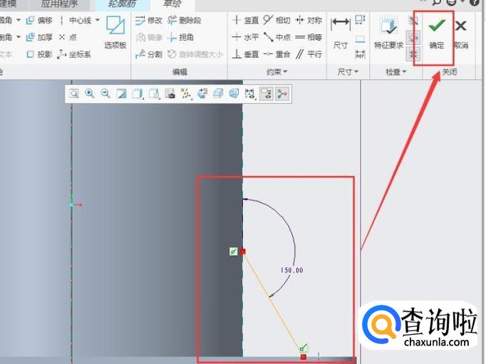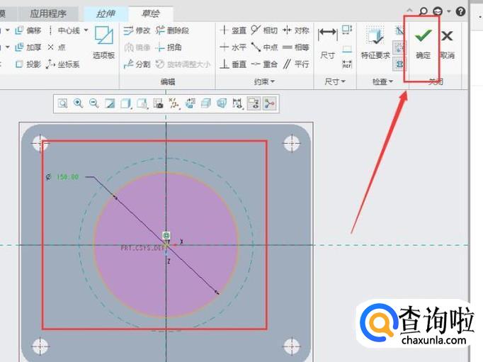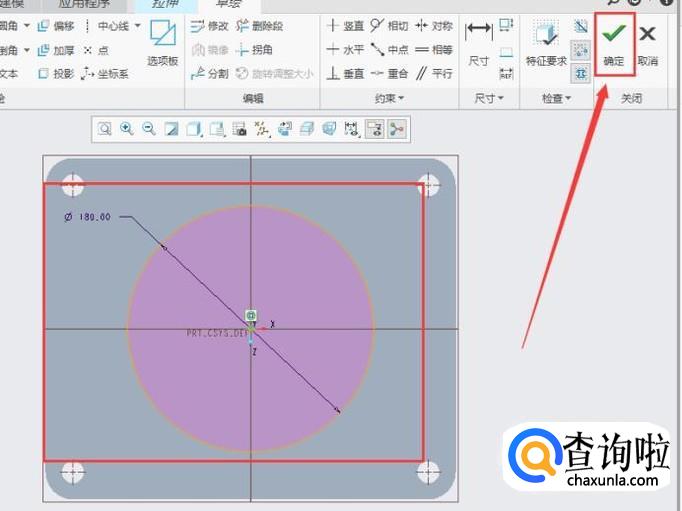 在草绘界面绘制图示的草图,点击右上角的“确定”即可,如图所示。
