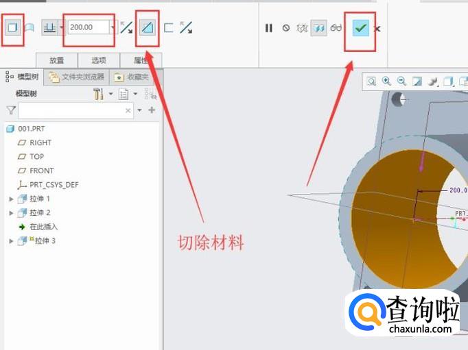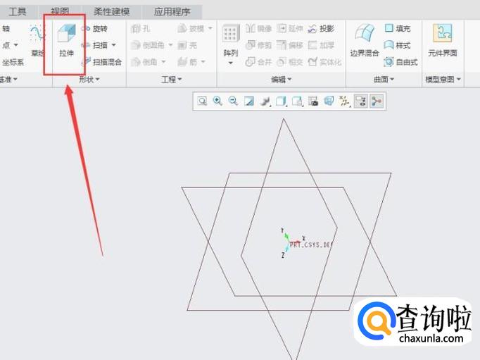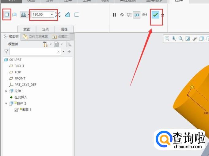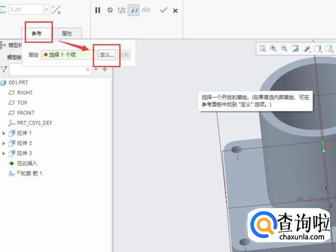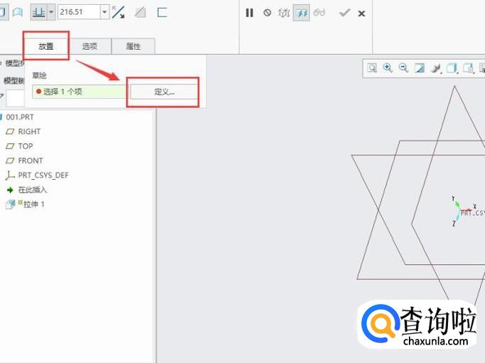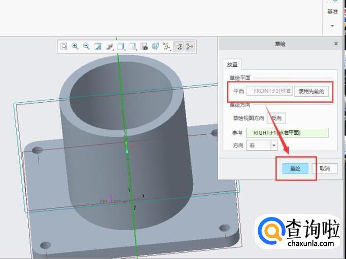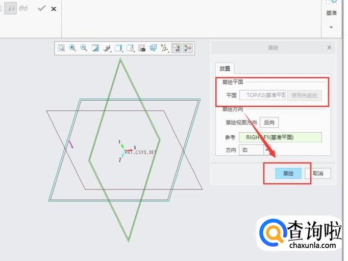 点击“拉伸”,以TOP面为草绘面,如图所示。