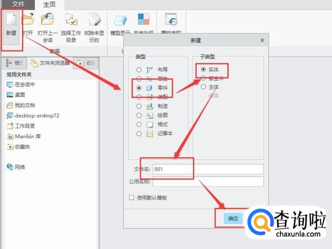 打开creo软件,创建一个新的零件,创建过程如图所示。