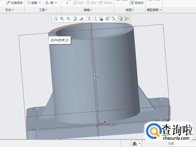 以零件底部的一个面,创建草绘面,拉伸一个圆柱体,如图所示。