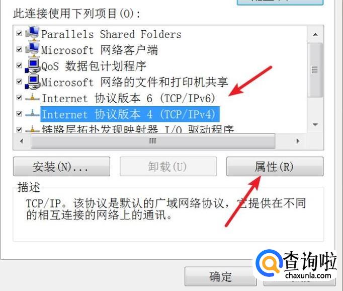 打开后点击选中ipv4,再点击‘属性’