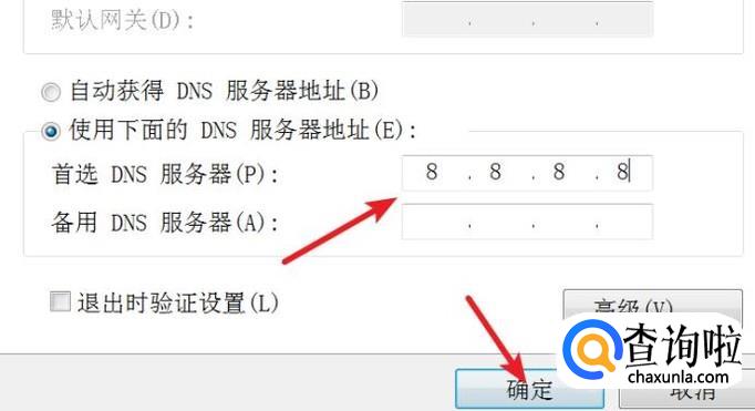 在dns服务器上,自行填写上8.8.8.8,点击确定按钮就行了。