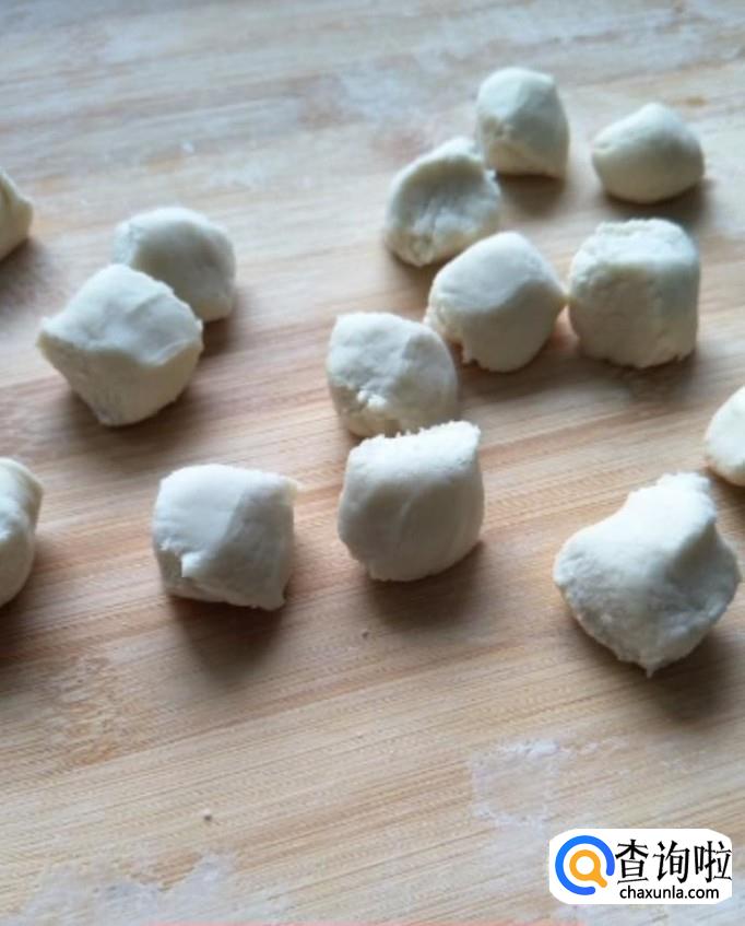 接着我们把面团揉成长条,揪成大小一致的剂子