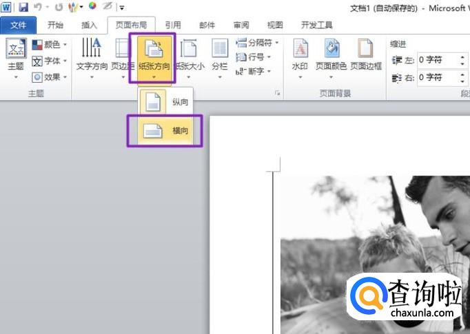 然后我们点击纸张方向的下拉箭头,弹出的界面,我们选择横向;