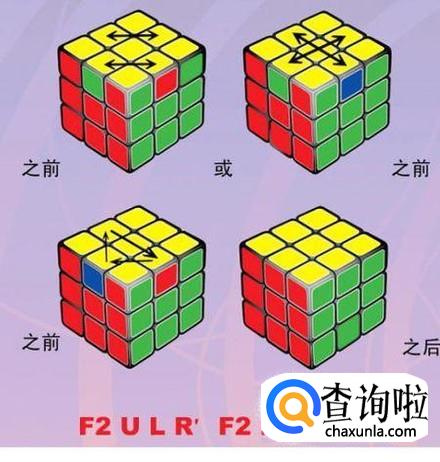 第二种和第三种:顶面黄色有2个不在顶层和顶面黄色有4个不在顶层要用二后四左定位,然后使用FRUR'U'F'公式,使用公式以后就会变成第一种的两种情况中的一种。在根据情况选择公式。